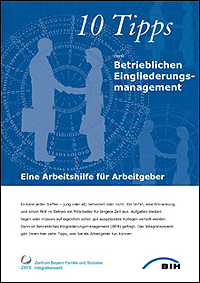 Das Faltblatt enthält 10 Tipps für Arbeitgeber rund um das Thema "Betriebliches Eingliederungsmanagement".Herausgeber | : | Bundesarbeitsgemeinschaft der Integrationsämter und Hauptfürsorgestellen |