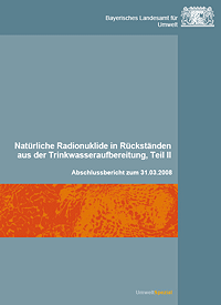 Abschlussbericht zum 31.03.2008In Rückständen aus der Trinkwasseraufbereitung können natürliche Radionuklide angereichert sein. Besonders bei der Entfernung von Eisen und Mangan können natürliche Radionuklide, v. a. Radium, auftreten. Das LfU hat Rückstände (insbesondere Schlämme aus der Filterrückspülung) aus mehr als 400 Wasserversorgungsunternehmen in ganz Bayern auf natürliche Radioaktivität untersucht, um festzustellen, ob bei Umgang und Entsorgung dieser Rückstände Beschäftigte und Personen der Bevölkerung einer erhöhten Strahlenexposition ausgesetzt sind. Dafür wurde die in Bayern jährlich anfallende Menge an Rückspülschlämmen abgeschätzt und die Entsorgungswege ermittelt. Auch Zusammenhänge zwischen dem Vorkommen erhöhter Radionuklidgehalte in den Schlämmen und den geologischen Verhältnissen im Trinkwassergewinnungsgebiet wurden aufgezeigt.