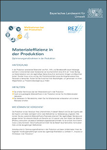 In der Produktion verarbeitete Materialien nehmen einen großen Anteil der Kosten in Unternehmen ein. Reduziert werden können diese Produktionskosten nicht nur durch die regelmäßige Überprüfung der technischen Anlagen und Maschinen, sondern auch durch die Nutzung des Know-hows der Beschäftigten. Eine Anleitung zu Optimierungsmaßnahmen in der Produktion bietet der Leitfaden "Materialeffizienz in der Produktion". Welche Potenziale zur Materialeffizienz in der Produktion bestehen, können mittels einer IST-Analyse im dazugehörigen Arbeitsblatt erarbeitet werden.| Herausgeber | : | Bayerisches Landesamt für Umwelt |