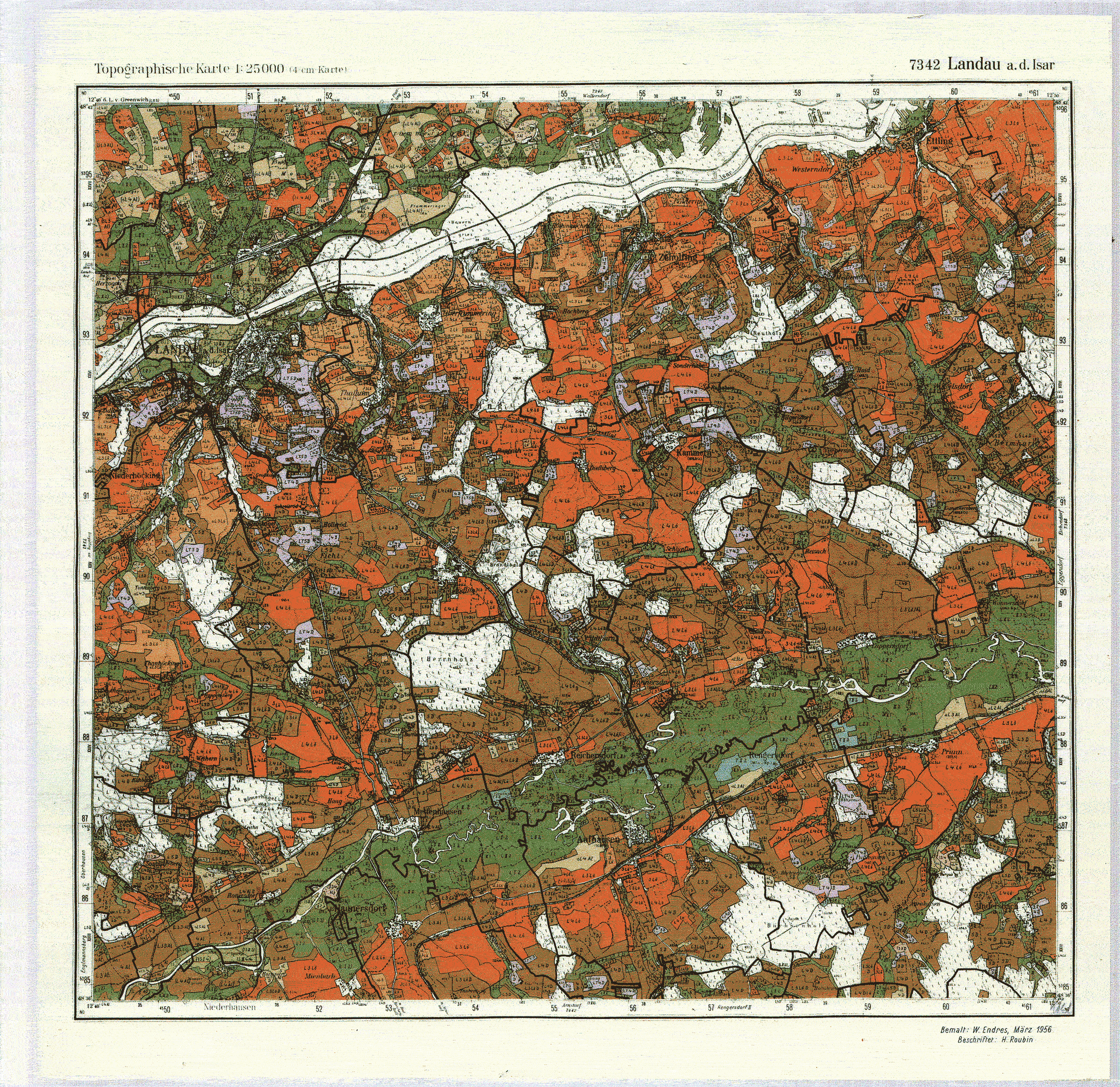 | Bodenschätzungskarte 1:25 000 7342 Landau an der Isar - 25372-S -scan- |
