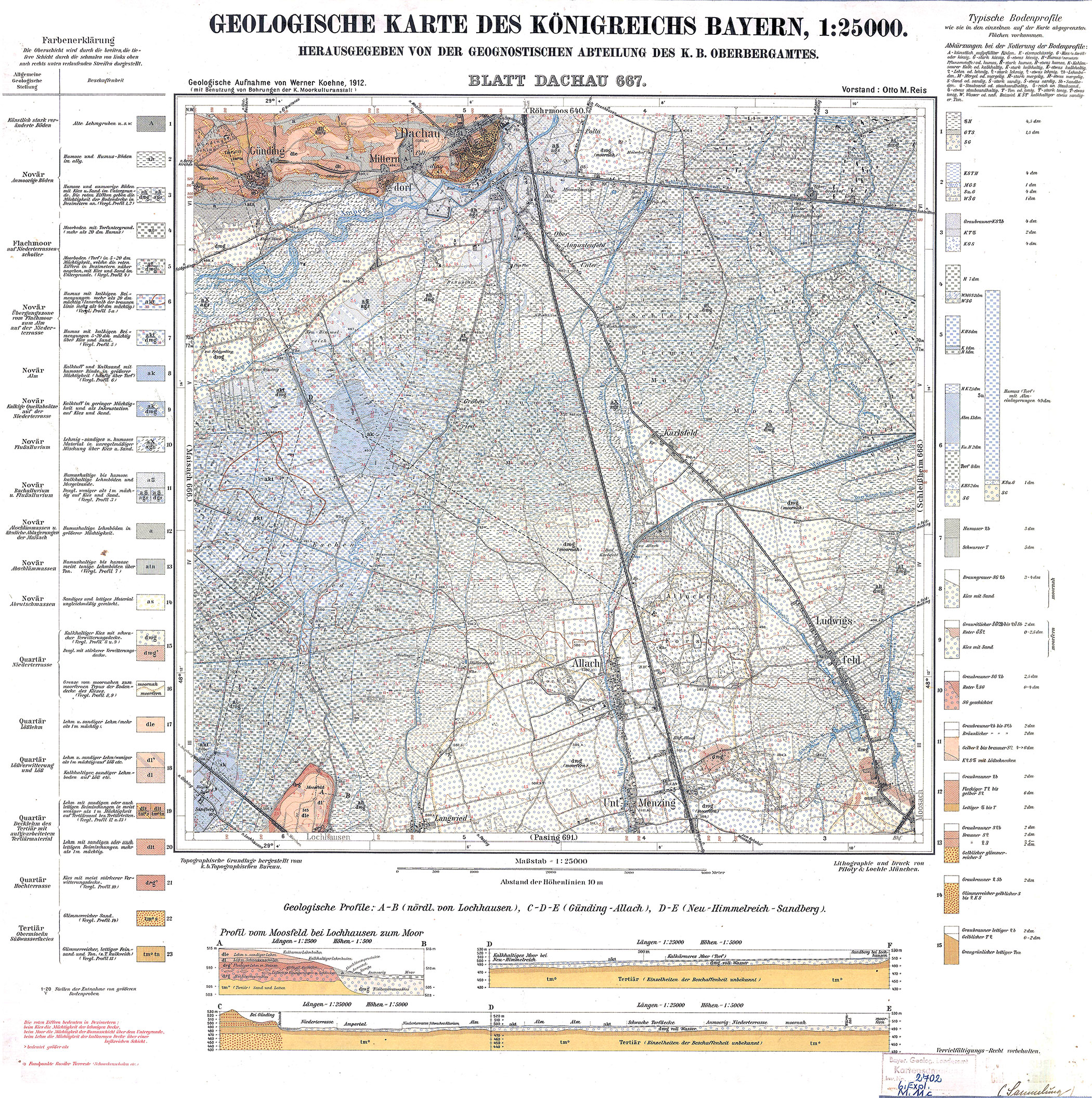 Historische Geologische Karte 1:25 000 7734 Dachau (alte Nummer 667)